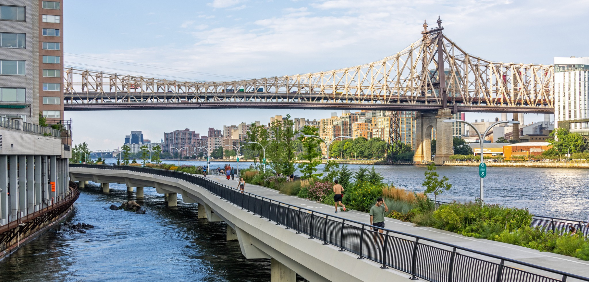 Along the way, with beautiful views of the East River and Roosevelt Island, guests will explore the newly minted East River Greenway and learn about its conception and construction.